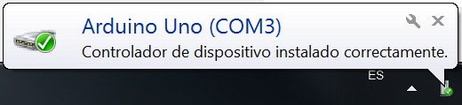 Ahora ya podemos volver a conectar la placa al ordenador. El led verde que indica que la placa está conectara se volverá a encender y no aparecerá ya ningún mensaje indicando que ha instalado ningún controlador de dispositivo.