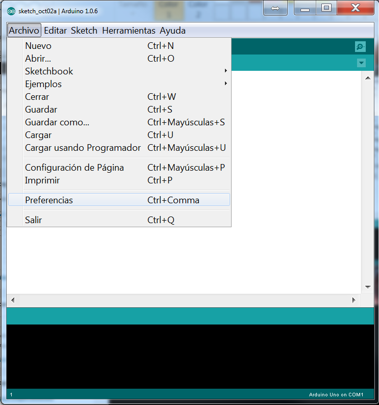 Una vez abierto el IDE, vamos a configurar nuestro entorno de trabajo. Para ello, hacemos clic en «Archivo -> Preferencias»: