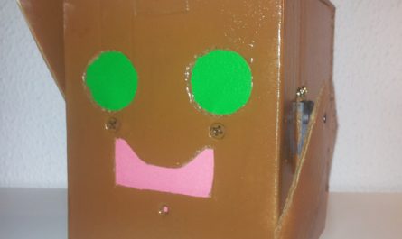 Os presento a Cartonbot B, segundo robot de la familia «Cartonbot», fabricado a partir de una caja de cartón y una rueda de un carrito a modo de rueda loca.