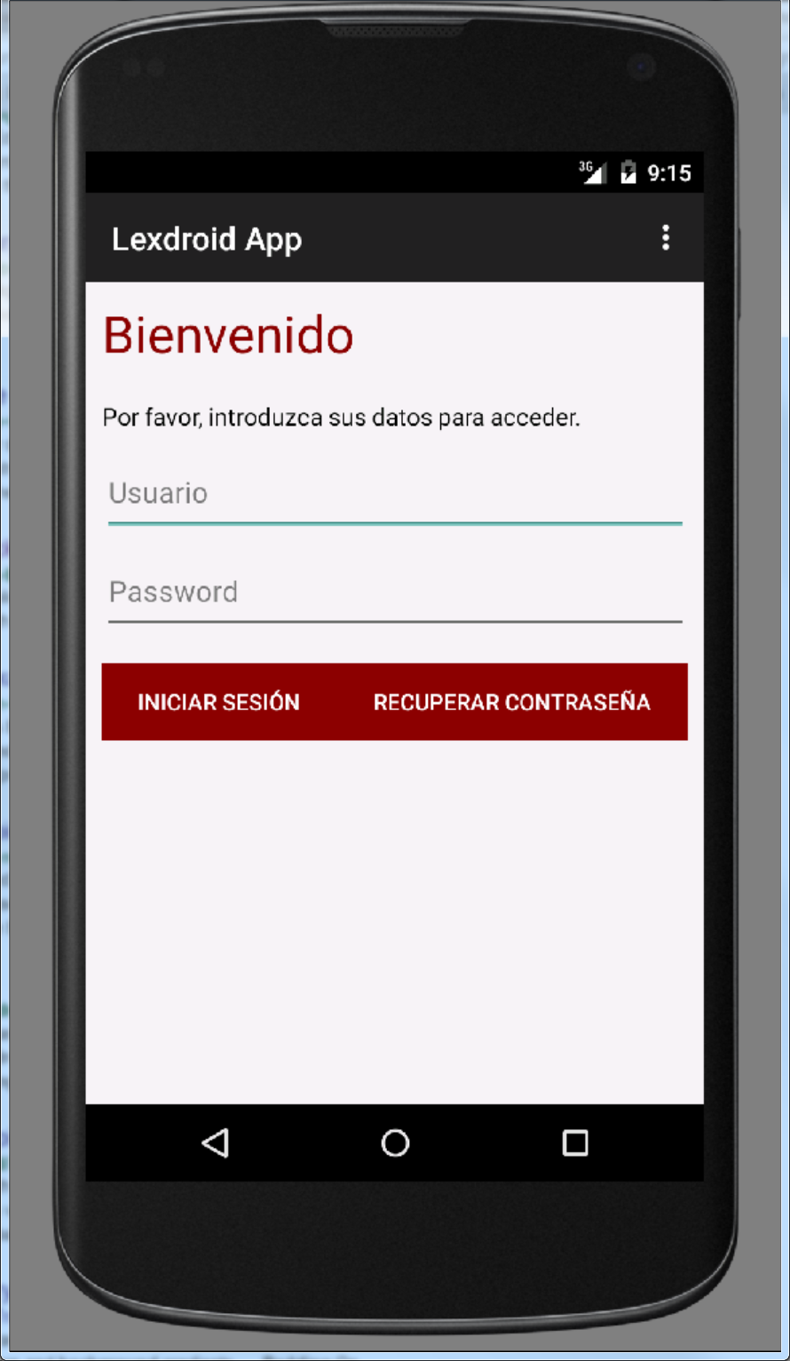 El ejercicio consiste en colocar en la pantalla dos cajas de texto, una para el usuario y otra para la contraseña, un botón de login, que, al pulsarlo, compruebe que el usuario y contraseña son correctos (éstos están metidos directamente en el código) y le indique al usuario el resultado. Adicionalmente, he metido un botón de recordar contraseña, que informa al usuario de le envía un correo recordatorio (de forma simulada, no se envía de verdad).