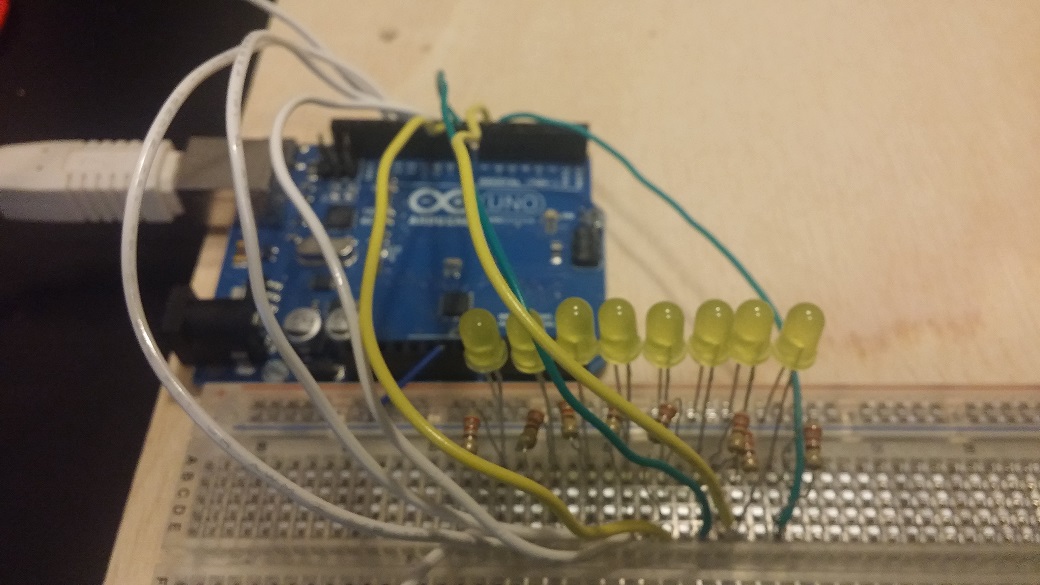 Como podéis apreciar, hemos necesitado utilizar ocho pines de la placa, una cantidad elevada considerando el total de pines del que dispone. En posteriores entradas veremos cómo conseguir el mismo resultado con menos pines.